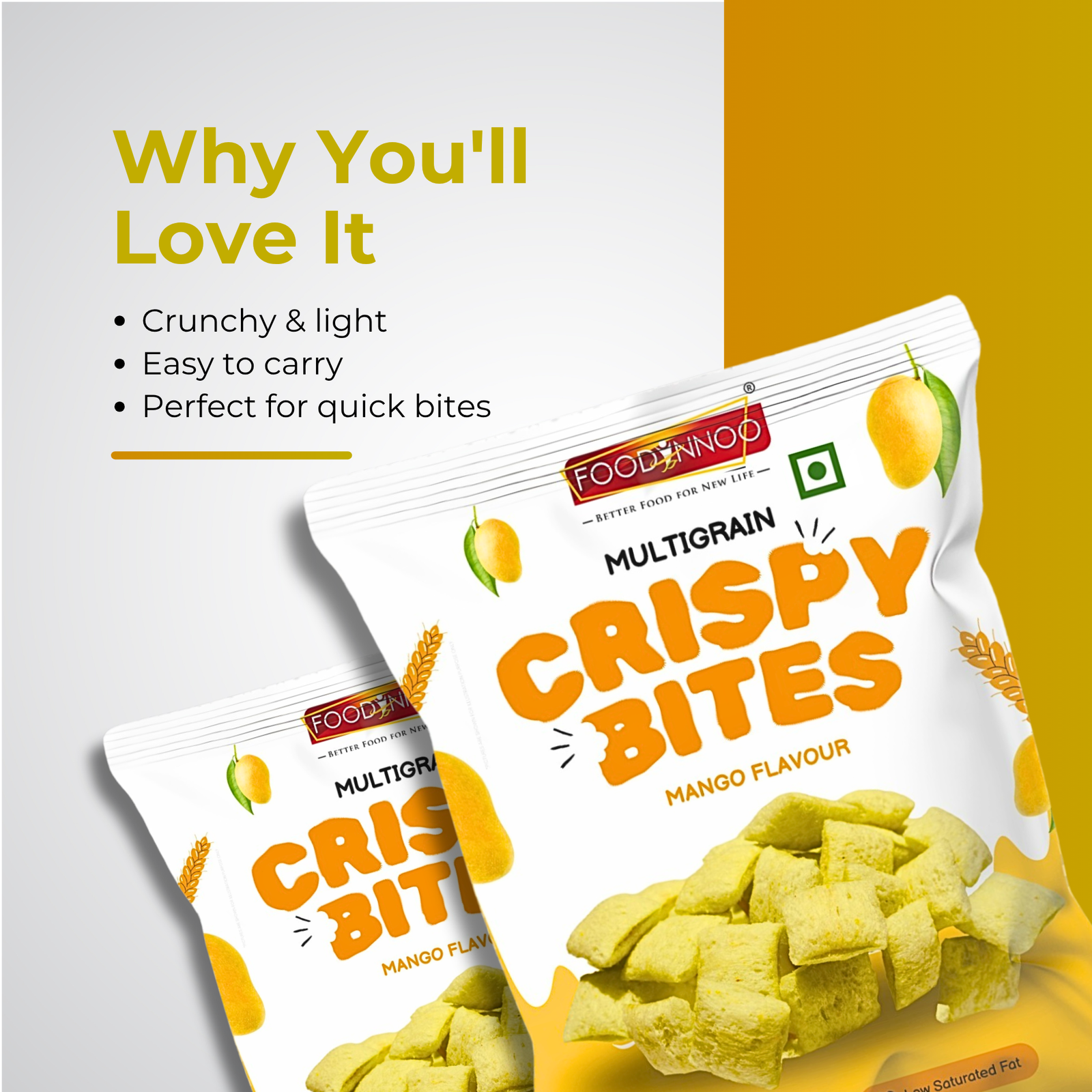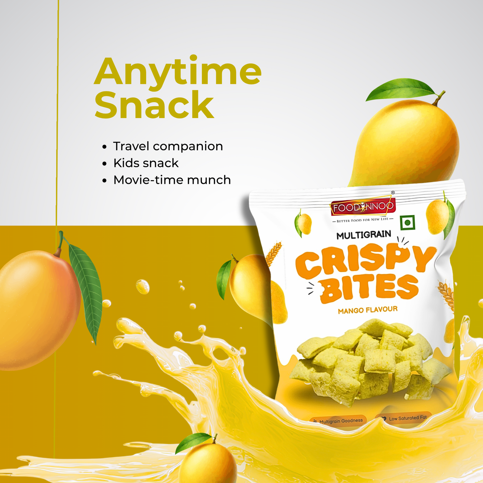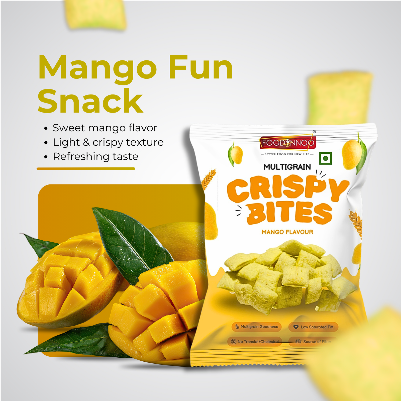 Tropical mango-flavored multigrain crispy bites. Nutritious, crunchy, and free from trans fat & cholesterol.