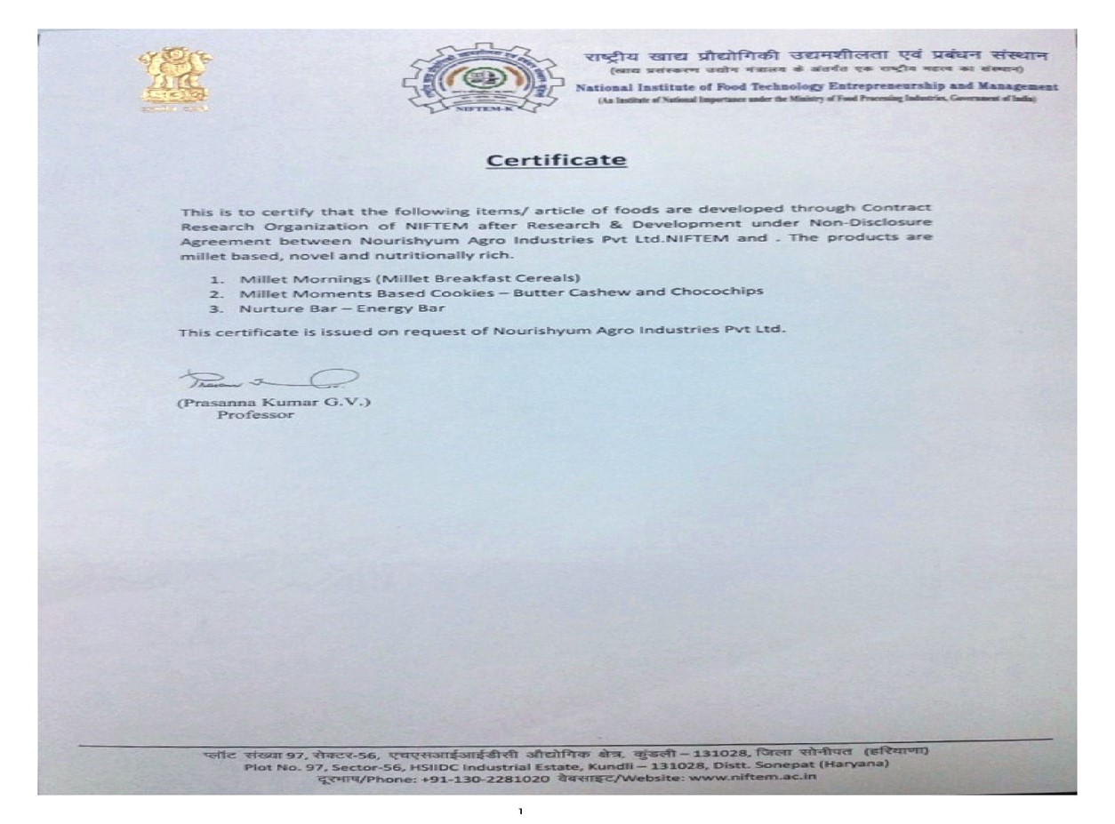 At Nourishyum Agro Industries Pvt. Ltd., we set out to fill a gap in India’s FMCG sector by launching Foodinnoo, a homegrown brand offering power of millet based & health based fusion products under affordable Ready-to-Eat & cook and fusion-based products. Guided by our vision of “Better Food for New Life,” we combine innovation with tradition.